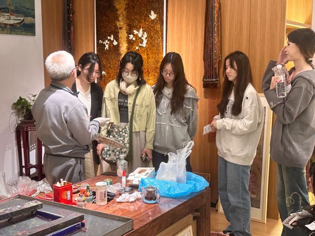 此行不仅解了大运河历史和扬州园林文化,更深入了解了扬州著名非物质文化遗产雕版印刷、扬州刻漆、绒花、刺绣等多种非遗项目的材料和制作工艺。以拍照、视频、访谈等形式记录第一手资料并形成调研报告。此外还参观了非遗大师工作室,与老匠人面对面沟通学习,亲身体验并感受到工匠之魂的传承精髓。